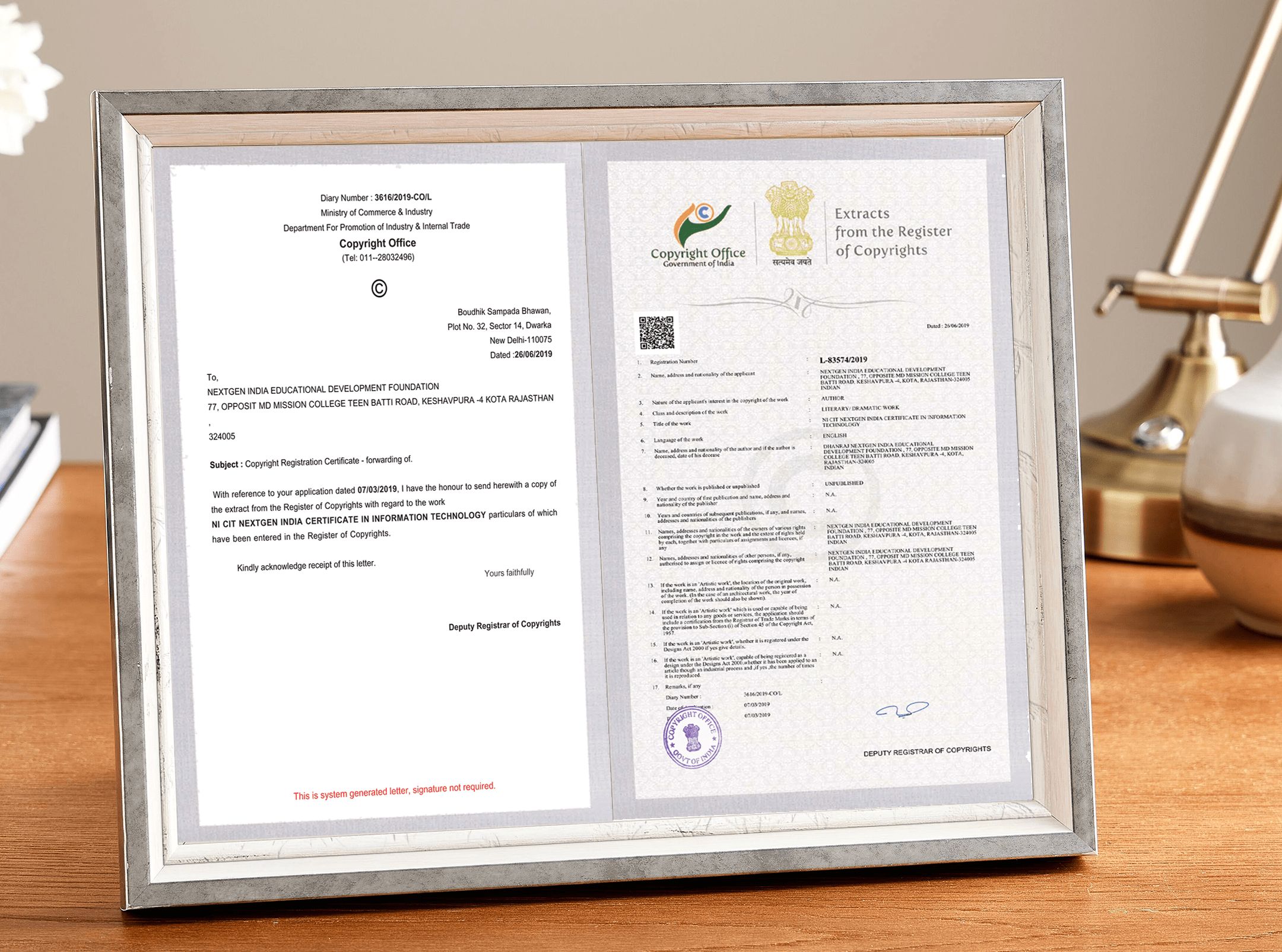 "NEXTGEN INDIA EDUCATIONAL DEVELOPMENT COUNCIL" is registered with Ministry of Corporate Affairs and as per the above notification our Vocational education board is considered to be "Government Recognized". Read More