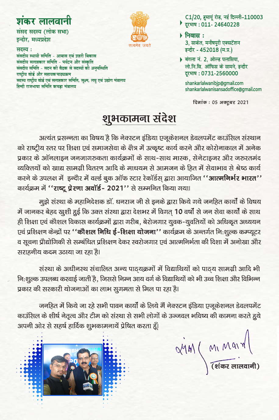 Member of Parliament (Rajyasabha) Govt. of India